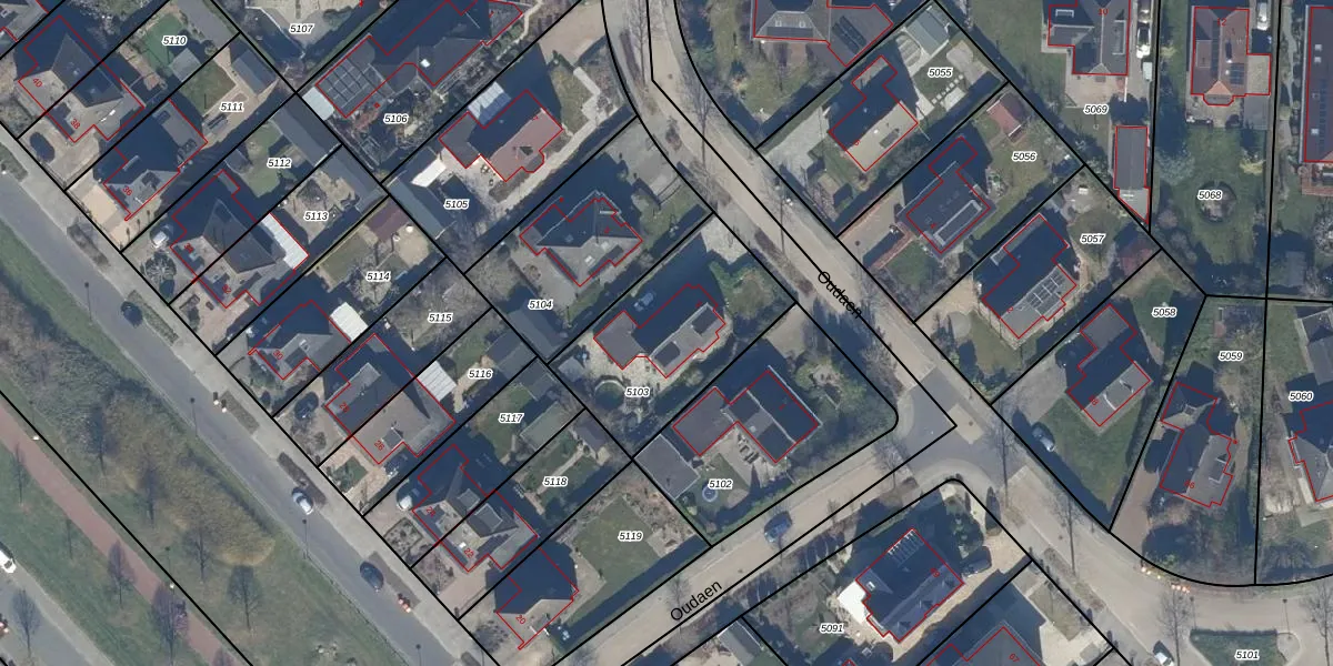 Het perceel waarop Oudaen 3 staat heeft een oppervlakte van 634 m². Dit is een groot perceel. De perceeloppervlakte wordt geregistreerd door het Kadaster. Gedetailleerde informatie over de maten van dit perceel kunt u vinden in het rapport Kadastrale kaart met maatvoering van Oudaen 3.