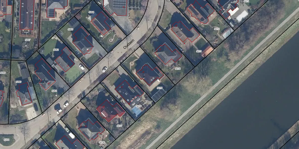 Het perceel waarop Oudaen 49 staat heeft een oppervlakte van 633 m². Dit is een groot perceel. De perceeloppervlakte wordt geregistreerd door het Kadaster. Gedetailleerde informatie over de maten van dit perceel kunt u vinden in het rapport Kadastrale kaart met maatvoering van Oudaen 49.