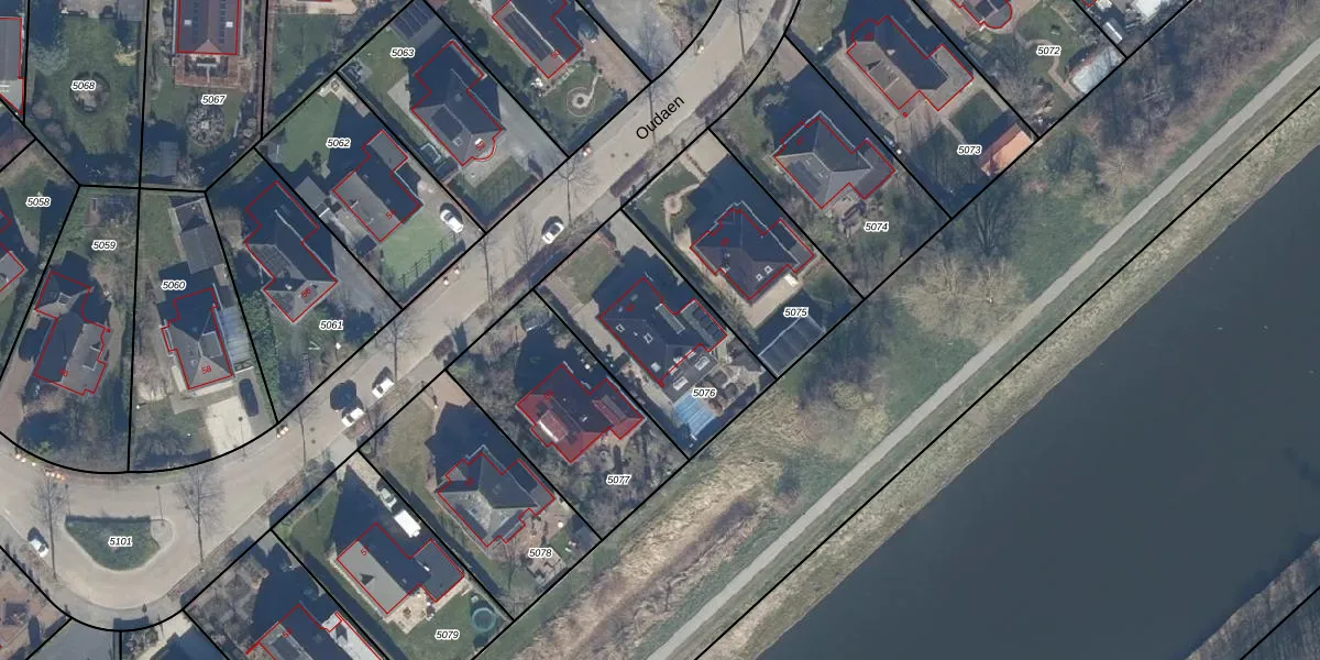 Het perceel waarop Oudaen 51 staat heeft een oppervlakte van 633 m². Dit is een groot perceel. De perceeloppervlakte wordt geregistreerd door het Kadaster. Gedetailleerde informatie over de maten van dit perceel kunt u vinden in het rapport Kadastrale kaart met maatvoering van Oudaen 51.