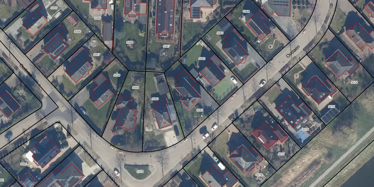 Het perceel waarop Oudaen 56 staat heeft een oppervlakte van 595 m². Dit is een groot perceel. De perceeloppervlakte wordt geregistreerd door het Kadaster. Gedetailleerde informatie over de maten van dit perceel kunt u vinden in het rapport Kadastrale kaart met maatvoering van Oudaen 56.