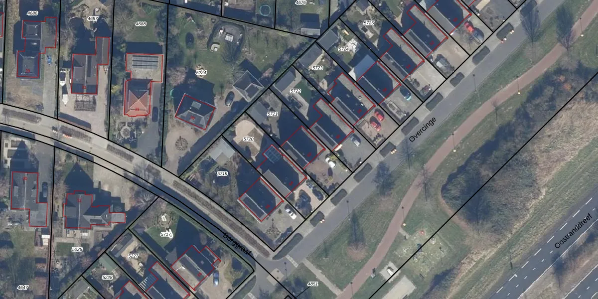 Het perceel waarop Overcinge 62 staat heeft een oppervlakte van 444 m². Dit is een groot perceel. De perceeloppervlakte wordt geregistreerd door het Kadaster. Gedetailleerde informatie over de maten van dit perceel kunt u vinden in het rapport Kadastrale kaart met maatvoering van Overcinge 62.