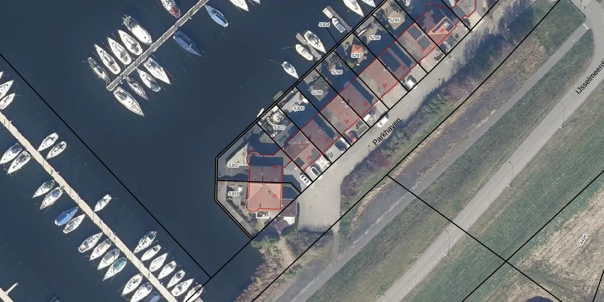 Parkhaven 25 is gelegen op kadastraal perceel LLS00M5301. Deze kadastrale aanduiding is uniek en wordt gebruikt door het Kadaster om eigendomsrechten en andere zakelijke rechten vast te leggen. Het perceel maakt onderdeel uit van de kadastrale gemeente Lelystad.