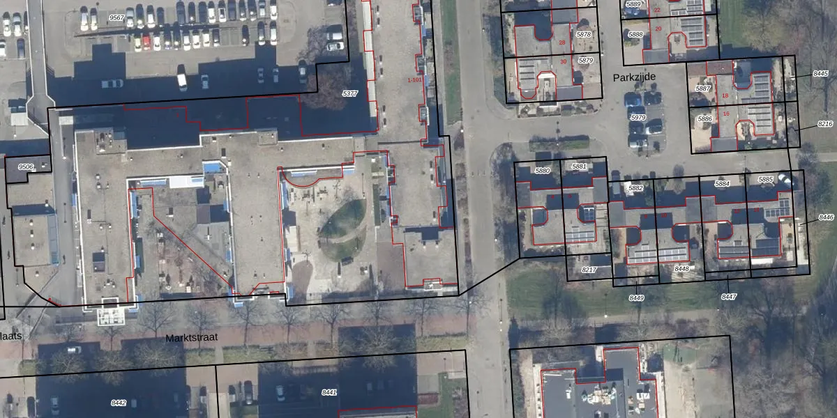 Het perceel waarop Parkzijde 5 staat heeft een oppervlakte van 5876 m². Dit is een zeer groot perceel. De perceeloppervlakte wordt geregistreerd door het Kadaster. Gedetailleerde informatie over de maten van dit perceel kunt u vinden in het rapport Kadastrale kaart met maatvoering van Parkzijde 5.