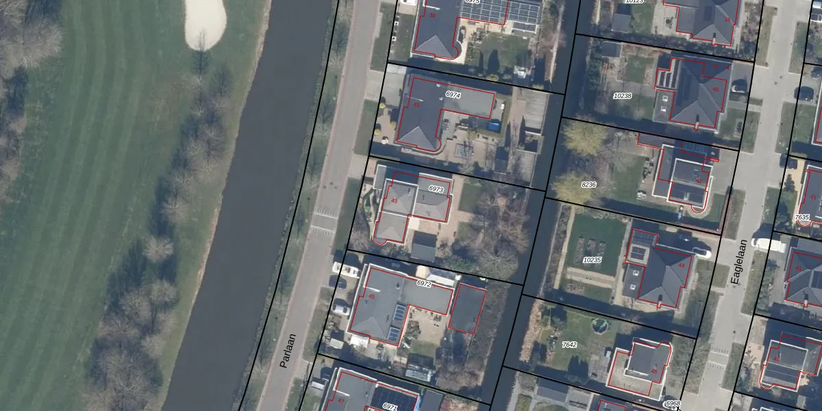 Het perceel waarop Parlaan 43 staat heeft een oppervlakte van 1032 m². Dit is een zeer groot perceel. De perceeloppervlakte wordt geregistreerd door het Kadaster. Gedetailleerde informatie over de maten van dit perceel kunt u vinden in het rapport Kadastrale kaart met maatvoering van Parlaan 43.