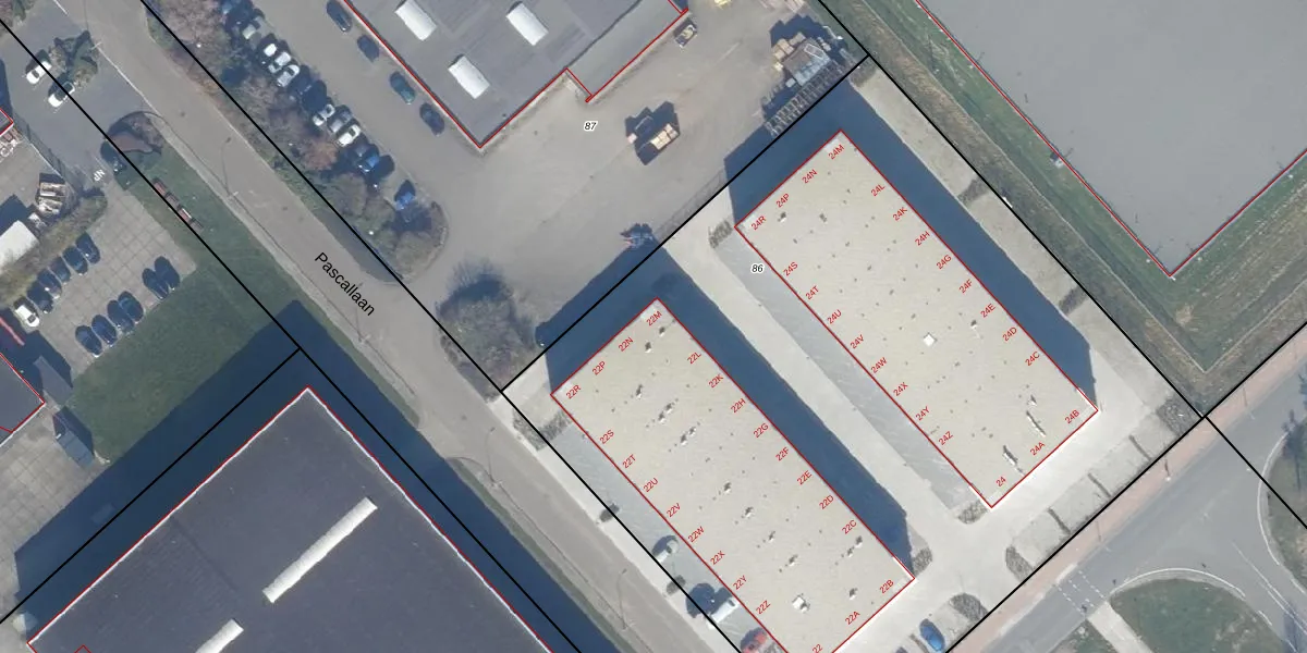 Pascallaan 22-M is gelegen op kadastraal perceel LLS00B86. Deze kadastrale aanduiding is uniek en wordt gebruikt door het Kadaster om eigendomsrechten en andere zakelijke rechten vast te leggen. Het perceel maakt onderdeel uit van de kadastrale gemeente Lelystad.