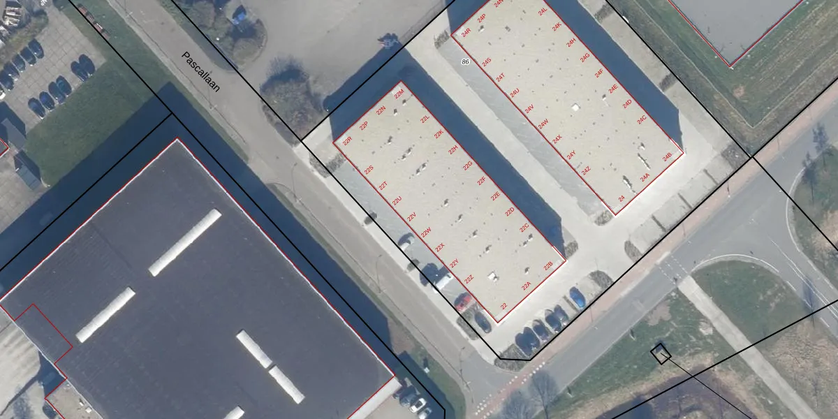 Pascallaan 22-V is gelegen op kadastraal perceel LLS00B86. Deze kadastrale aanduiding is uniek en wordt gebruikt door het Kadaster om eigendomsrechten en andere zakelijke rechten vast te leggen. Het perceel maakt onderdeel uit van de kadastrale gemeente Lelystad.