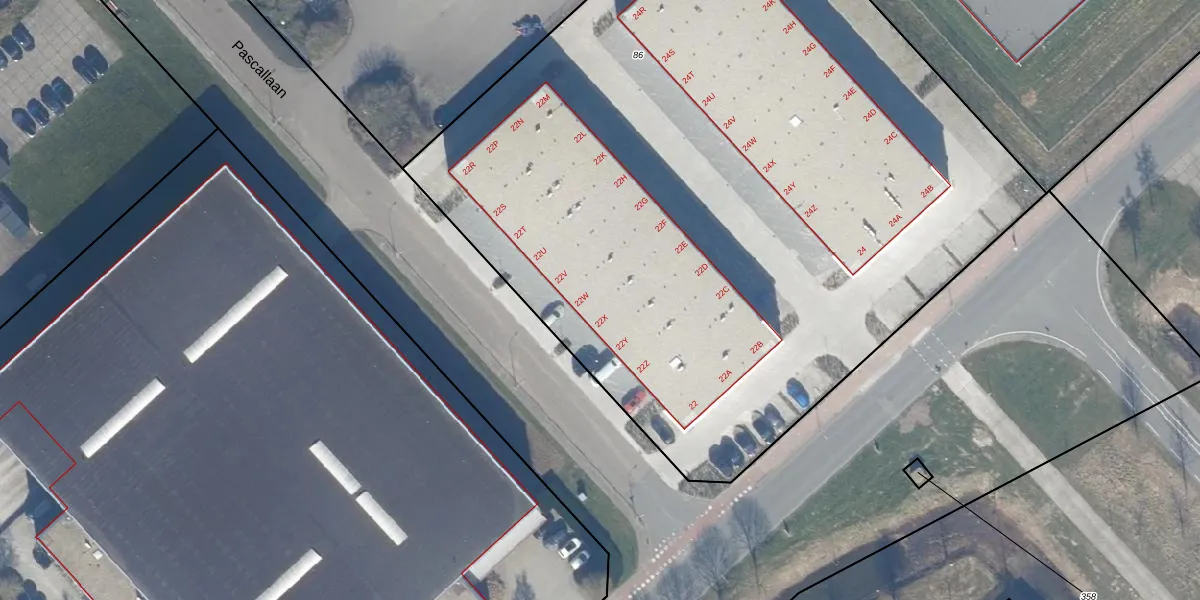 Pascallaan 22-W is gelegen op kadastraal perceel LLS00B86. Deze kadastrale aanduiding is uniek en wordt gebruikt door het Kadaster om eigendomsrechten en andere zakelijke rechten vast te leggen. Het perceel maakt onderdeel uit van de kadastrale gemeente Lelystad.