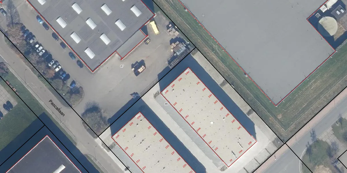 Pascallaan 24-P is gelegen op kadastraal perceel LLS00B86. Deze kadastrale aanduiding is uniek en wordt gebruikt door het Kadaster om eigendomsrechten en andere zakelijke rechten vast te leggen. Het perceel maakt onderdeel uit van de kadastrale gemeente Lelystad.