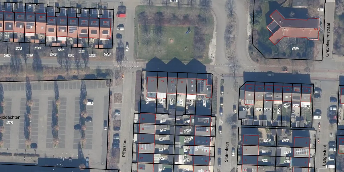 Het perceel waarop Pijlersloot 13 staat heeft een oppervlakte van 141 m². Dit is een middelgroot perceel. De perceeloppervlakte wordt geregistreerd door het Kadaster. Gedetailleerde informatie over de maten van dit perceel kunt u vinden in het rapport Kadastrale kaart met maatvoering van Pijlersloot 13.