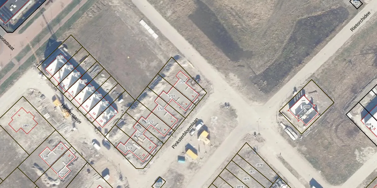 Gebruik de zoekbalk of klik op een perceel voor informatie over de adressen binnen dit perceel.