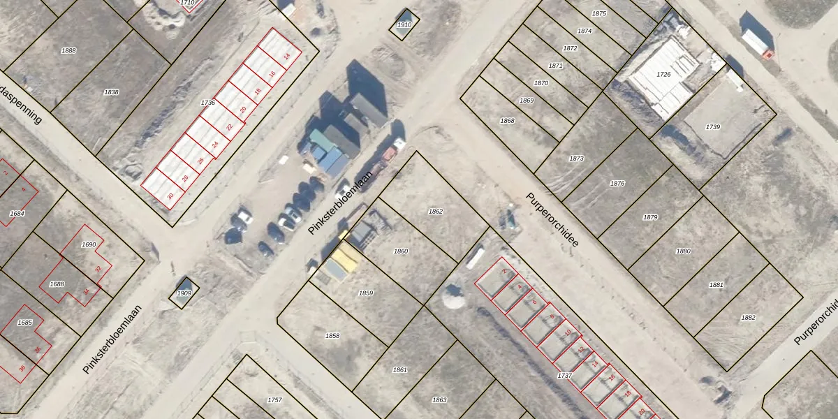 Gebruik de zoekbalk of klik op een perceel voor informatie over de adressen binnen dit perceel.