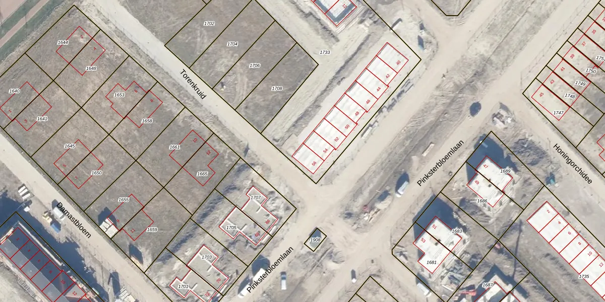 Pinksterbloemlaan 56 is gelegen op kadastraal perceel LLS00A1733. Deze kadastrale aanduiding is uniek en wordt gebruikt door het Kadaster om eigendomsrechten en andere zakelijke rechten vast te leggen. Het perceel maakt onderdeel uit van de kadastrale gemeente Lelystad.