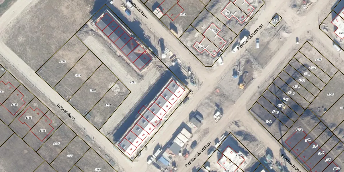 Pinksterbloemlaan 74 is gelegen op kadastraal perceel LLS00A1732. Deze kadastrale aanduiding is uniek en wordt gebruikt door het Kadaster om eigendomsrechten en andere zakelijke rechten vast te leggen. Het perceel maakt onderdeel uit van de kadastrale gemeente Lelystad.