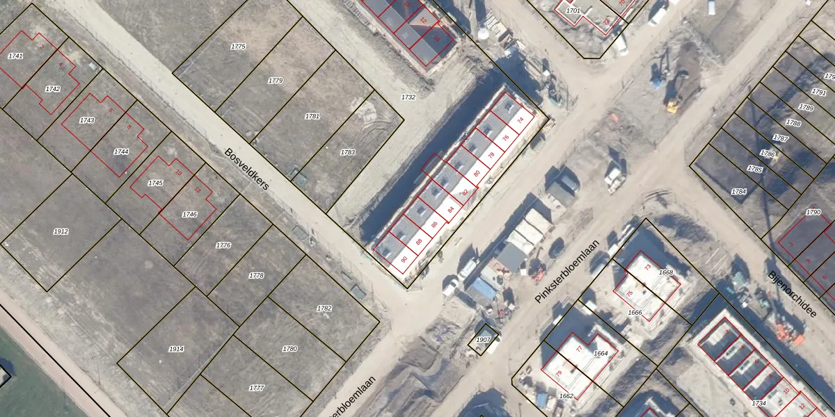Pinksterbloemlaan 86 is gelegen op kadastraal perceel LLS00A1732. Deze kadastrale aanduiding is uniek en wordt gebruikt door het Kadaster om eigendomsrechten en andere zakelijke rechten vast te leggen. Het perceel maakt onderdeel uit van de kadastrale gemeente Lelystad.