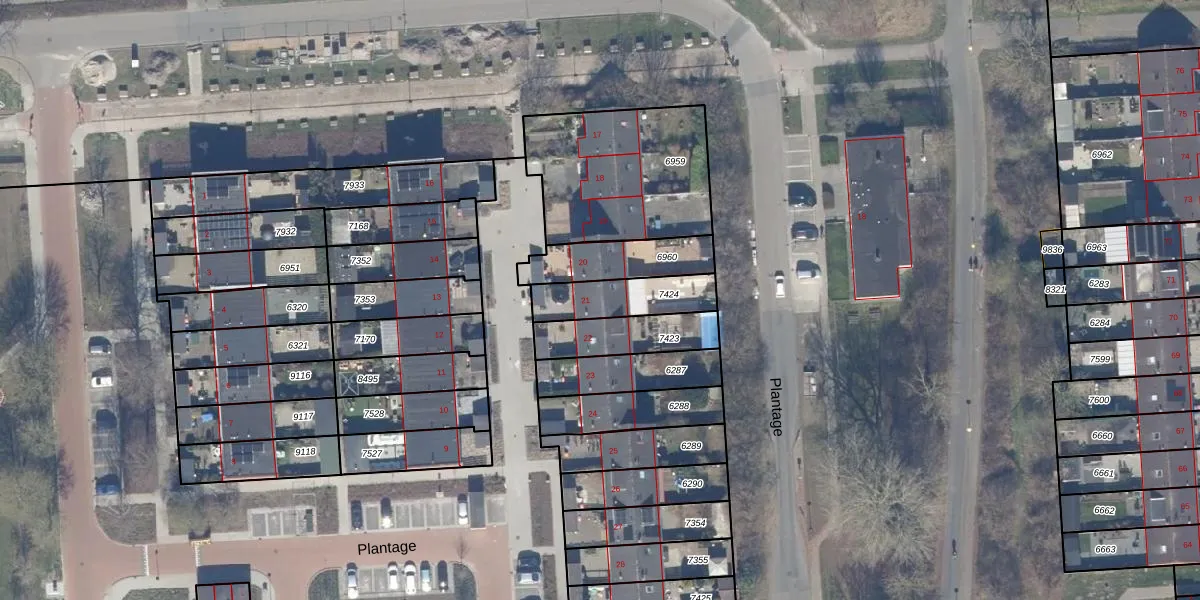 Het perceel waarop Plantage 21 staat heeft een oppervlakte van 194 m². Dit is een middelgroot perceel. De perceeloppervlakte wordt geregistreerd door het Kadaster. Gedetailleerde informatie over de maten van dit perceel kunt u vinden in het rapport Kadastrale kaart met maatvoering van Plantage 21.