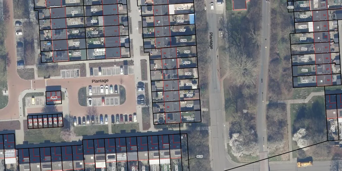 Het perceel waarop Plantage 28 staat heeft een oppervlakte van 175 m². Dit is een middelgroot perceel. De perceeloppervlakte wordt geregistreerd door het Kadaster. Gedetailleerde informatie over de maten van dit perceel kunt u vinden in het rapport Kadastrale kaart met maatvoering van Plantage 28.