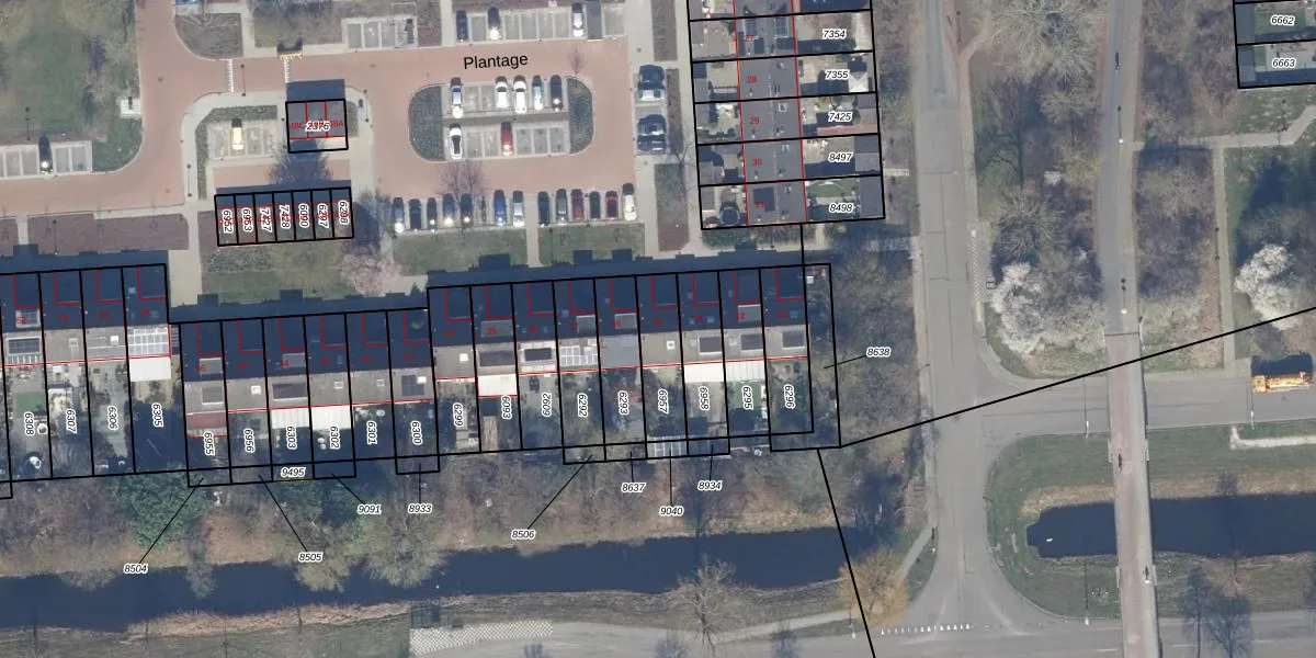 Gebruik de zoekbalk of klik op een perceel voor informatie over de adressen binnen dit perceel.