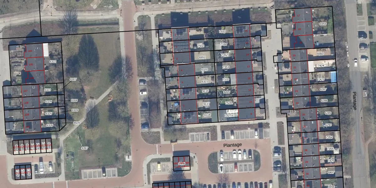 Het perceel waarop Plantage 6 staat heeft een oppervlakte van 170 m². Dit is een middelgroot perceel. De perceeloppervlakte wordt geregistreerd door het Kadaster. Gedetailleerde informatie over de maten van dit perceel kunt u vinden in het rapport Kadastrale kaart met maatvoering van Plantage 6.
