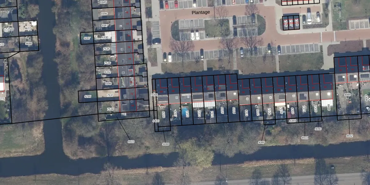 Het perceel waarop Plantage 67 staat heeft een oppervlakte van 163 m². Dit is een middelgroot perceel. De perceeloppervlakte wordt geregistreerd door het Kadaster. Gedetailleerde informatie over de maten van dit perceel kunt u vinden in het rapport Kadastrale kaart met maatvoering van Plantage 67.