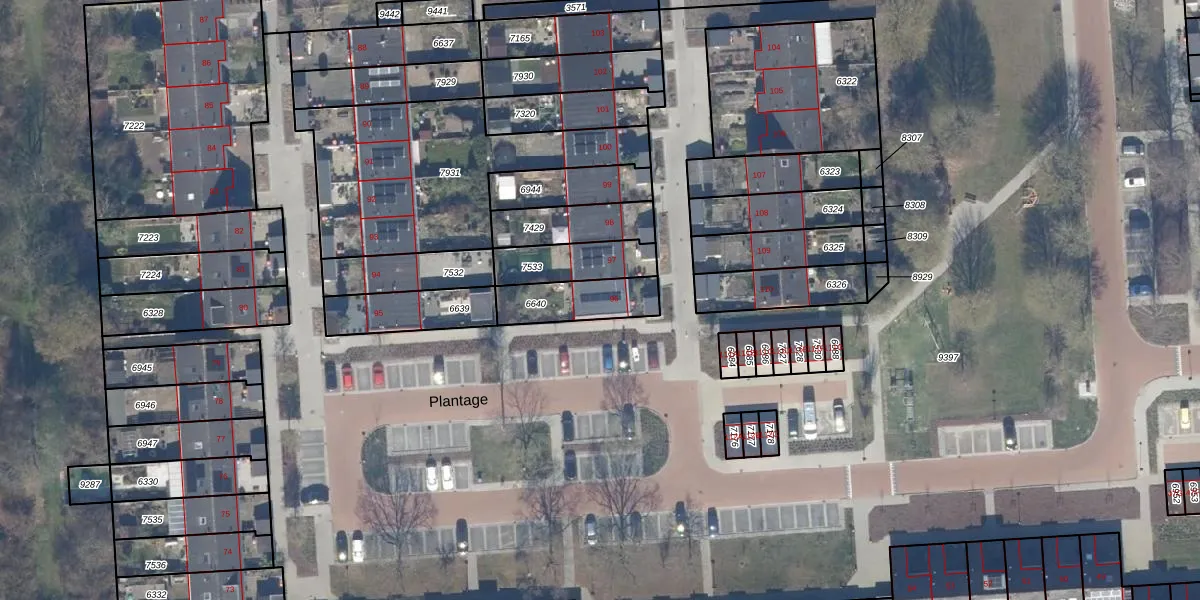 Gebruik de zoekbalk of klik op een perceel voor informatie over de adressen binnen dit perceel.