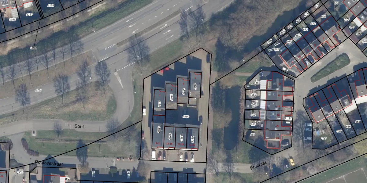 Gebruik de zoekbalk of klik op een perceel voor informatie over de adressen binnen dit perceel.