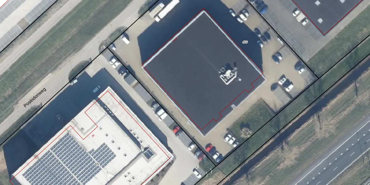 Het perceel waarop Poseidonweg 33 staat heeft een oppervlakte van 6450 m². Dit is een zeer groot perceel. De perceeloppervlakte wordt geregistreerd door het Kadaster. Gedetailleerde informatie over de maten van dit perceel kunt u vinden in het rapport Kadastrale kaart met maatvoering van Poseidonweg 33.