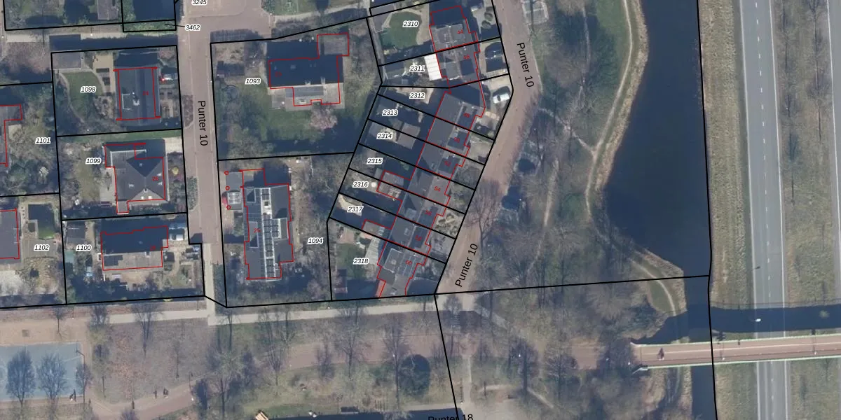 Gebruik de zoekbalk of klik op een perceel voor informatie over de adressen binnen dit perceel.