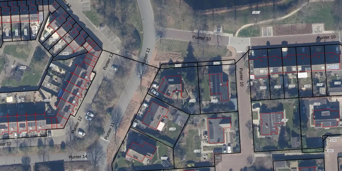 Het perceel waarop Punter 11 1 staat heeft een oppervlakte van 624 m². Dit is een groot perceel. De perceeloppervlakte wordt geregistreerd door het Kadaster. Gedetailleerde informatie over de maten van dit perceel kunt u vinden in het rapport Kadastrale kaart met maatvoering van Punter 11 1.