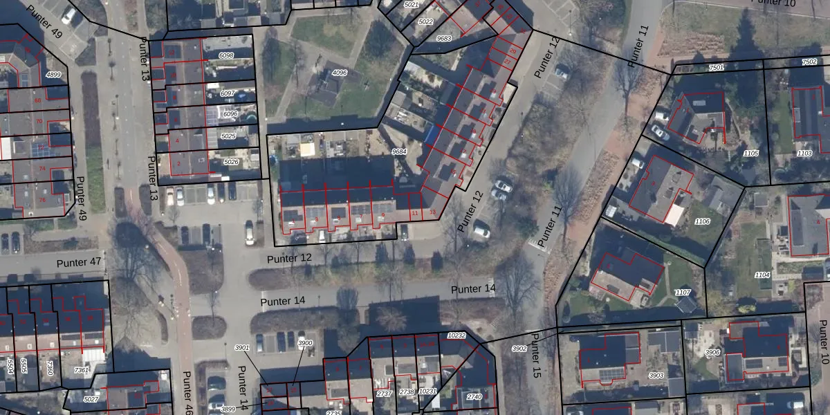 Punter 12 11 is gelegen op kadastraal perceel LLS00M9684. Deze kadastrale aanduiding is uniek en wordt gebruikt door het Kadaster om eigendomsrechten en andere zakelijke rechten vast te leggen. Het perceel maakt onderdeel uit van de kadastrale gemeente Lelystad.