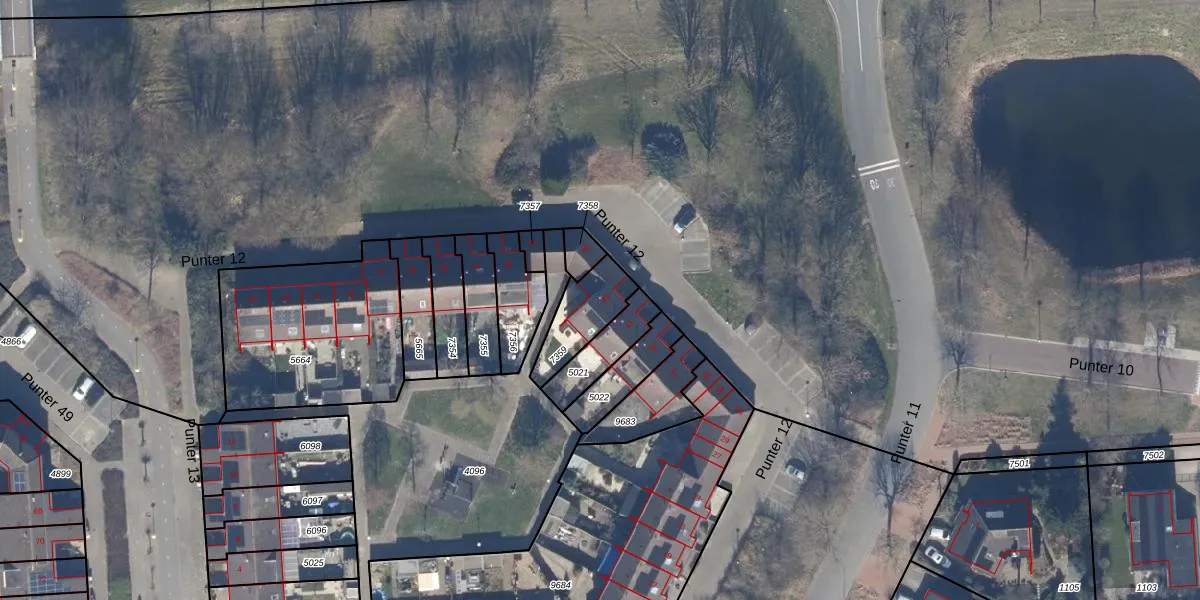 Het perceel waarop Punter 12 43 staat heeft een oppervlakte van 163 m². Dit is een middelgroot perceel. De perceeloppervlakte wordt geregistreerd door het Kadaster. Gedetailleerde informatie over de maten van dit perceel kunt u vinden in het rapport Kadastrale kaart met maatvoering van Punter 12 43.