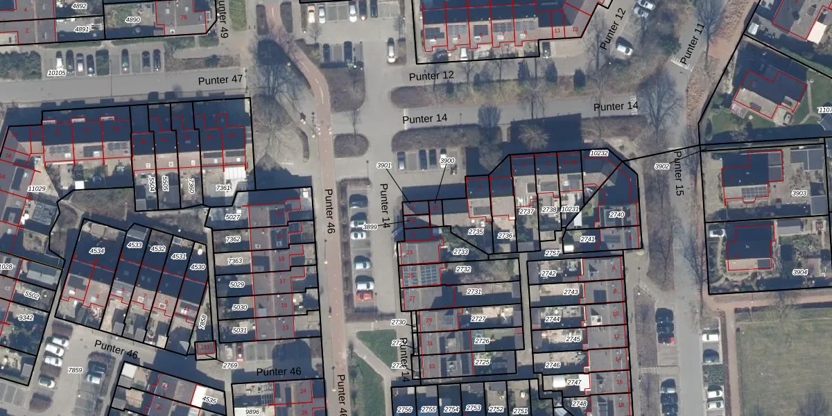 Het perceel waarop Punter 14 17 staat heeft een oppervlakte van 21 m². Dit is een klein perceel. De perceeloppervlakte wordt geregistreerd door het Kadaster. Gedetailleerde informatie over de maten van dit perceel kunt u vinden in het rapport Kadastrale kaart met maatvoering van Punter 14 17.