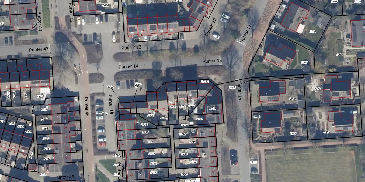 Gebruik de zoekbalk of klik op een perceel voor informatie over de adressen binnen dit perceel.