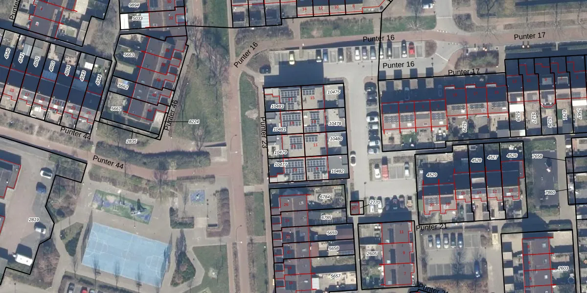 Het perceel waarop Punter 16 21 staat heeft een oppervlakte van 102 m². Dit is een middelgroot perceel. De perceeloppervlakte wordt geregistreerd door het Kadaster. Gedetailleerde informatie over de maten van dit perceel kunt u vinden in het rapport Kadastrale kaart met maatvoering van Punter 16 21.