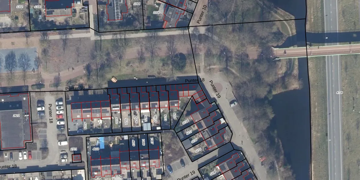 Het perceel waarop Punter 18 24 staat heeft een oppervlakte van 289 m². Dit is een middelgroot perceel. De perceeloppervlakte wordt geregistreerd door het Kadaster. Gedetailleerde informatie over de maten van dit perceel kunt u vinden in het rapport Kadastrale kaart met maatvoering van Punter 18 24.