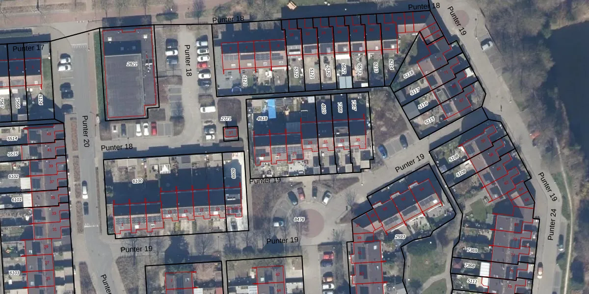 Het perceel waarop Punter 19 27 staat heeft een oppervlakte van 640 m². Dit is een groot perceel. De perceeloppervlakte wordt geregistreerd door het Kadaster. Gedetailleerde informatie over de maten van dit perceel kunt u vinden in het rapport Kadastrale kaart met maatvoering van Punter 19 27.