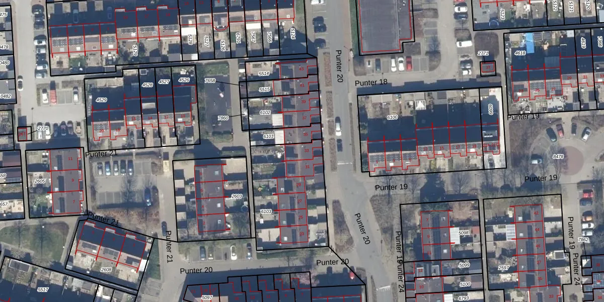 Het perceel waarop Punter 20 33 staat heeft een oppervlakte van 827 m². Dit is een groot perceel. De perceeloppervlakte wordt geregistreerd door het Kadaster. Gedetailleerde informatie over de maten van dit perceel kunt u vinden in het rapport Kadastrale kaart met maatvoering van Punter 20 33.