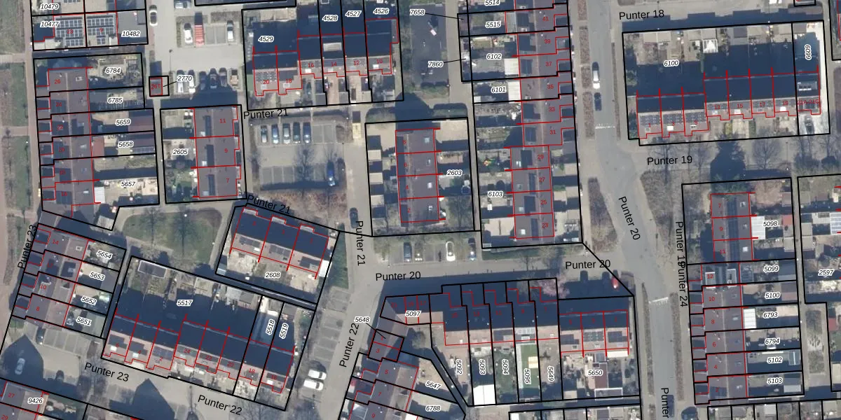 Het perceel waarop Punter 21 2 staat heeft een oppervlakte van 658 m². Dit is een groot perceel. De perceeloppervlakte wordt geregistreerd door het Kadaster. Gedetailleerde informatie over de maten van dit perceel kunt u vinden in het rapport Kadastrale kaart met maatvoering van Punter 21 2.