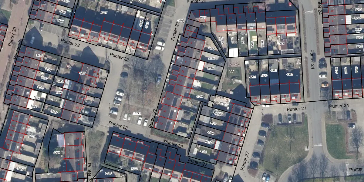 Het perceel waarop Punter 22 15 staat heeft een oppervlakte van 921 m². Dit is een groot perceel. De perceeloppervlakte wordt geregistreerd door het Kadaster. Gedetailleerde informatie over de maten van dit perceel kunt u vinden in het rapport Kadastrale kaart met maatvoering van Punter 22 15.