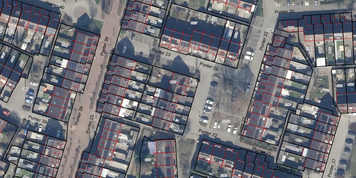 Het perceel waarop Punter 22 28 staat heeft een oppervlakte van 296 m². Dit is een middelgroot perceel. De perceeloppervlakte wordt geregistreerd door het Kadaster. Gedetailleerde informatie over de maten van dit perceel kunt u vinden in het rapport Kadastrale kaart met maatvoering van Punter 22 28.