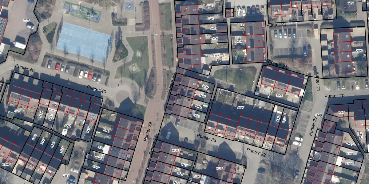 Het perceel waarop Punter 23 12 staat heeft een oppervlakte van 118 m². Dit is een middelgroot perceel. De perceeloppervlakte wordt geregistreerd door het Kadaster. Gedetailleerde informatie over de maten van dit perceel kunt u vinden in het rapport Kadastrale kaart met maatvoering van Punter 23 12.