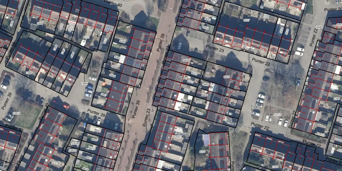 Gebruik de zoekbalk of klik op een perceel voor informatie over de adressen binnen dit perceel.