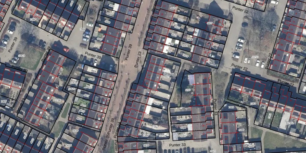 Het perceel waarop Punter 23 43 staat heeft een oppervlakte van 641 m². Dit is een groot perceel. De perceeloppervlakte wordt geregistreerd door het Kadaster. Gedetailleerde informatie over de maten van dit perceel kunt u vinden in het rapport Kadastrale kaart met maatvoering van Punter 23 43.