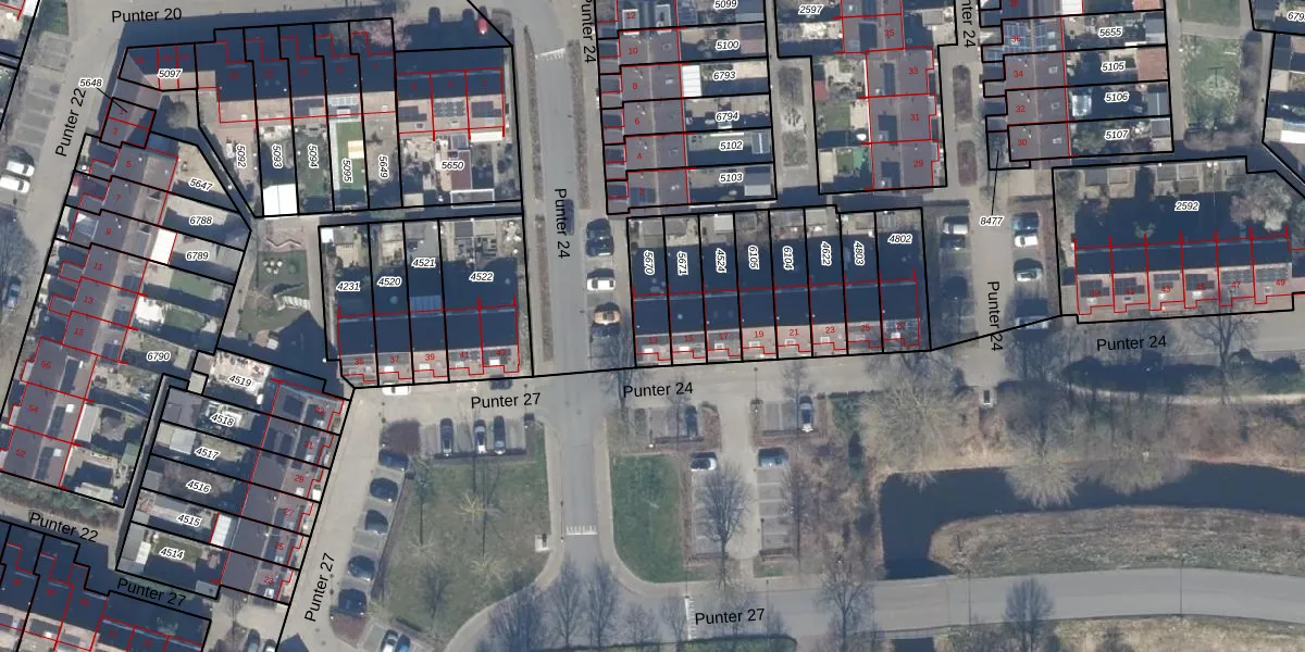Het perceel waarop Punter 24 13 staat heeft een oppervlakte van 128 m². Dit is een middelgroot perceel. De perceeloppervlakte wordt geregistreerd door het Kadaster. Gedetailleerde informatie over de maten van dit perceel kunt u vinden in het rapport Kadastrale kaart met maatvoering van Punter 24 13.