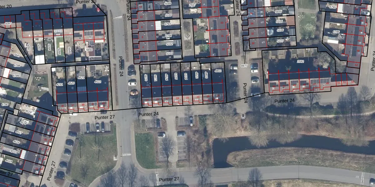 Het perceel waarop Punter 24 21 staat heeft een oppervlakte van 125 m². Dit is een middelgroot perceel. De perceeloppervlakte wordt geregistreerd door het Kadaster. Gedetailleerde informatie over de maten van dit perceel kunt u vinden in het rapport Kadastrale kaart met maatvoering van Punter 24 21.