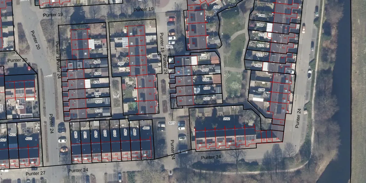 Gebruik de zoekbalk of klik op een perceel voor informatie over de adressen binnen dit perceel.