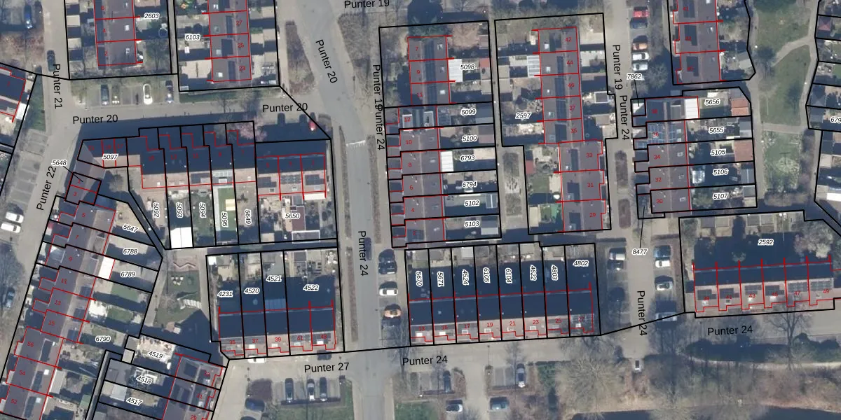 Het perceel waarop Punter 24 4 staat heeft een oppervlakte van 140 m². Dit is een middelgroot perceel. De perceeloppervlakte wordt geregistreerd door het Kadaster. Gedetailleerde informatie over de maten van dit perceel kunt u vinden in het rapport Kadastrale kaart met maatvoering van Punter 24 4.