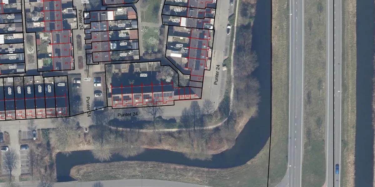 Het perceel waarop Punter 24 53 staat heeft een oppervlakte van 959 m². Dit is een groot perceel. De perceeloppervlakte wordt geregistreerd door het Kadaster. Gedetailleerde informatie over de maten van dit perceel kunt u vinden in het rapport Kadastrale kaart met maatvoering van Punter 24 53.