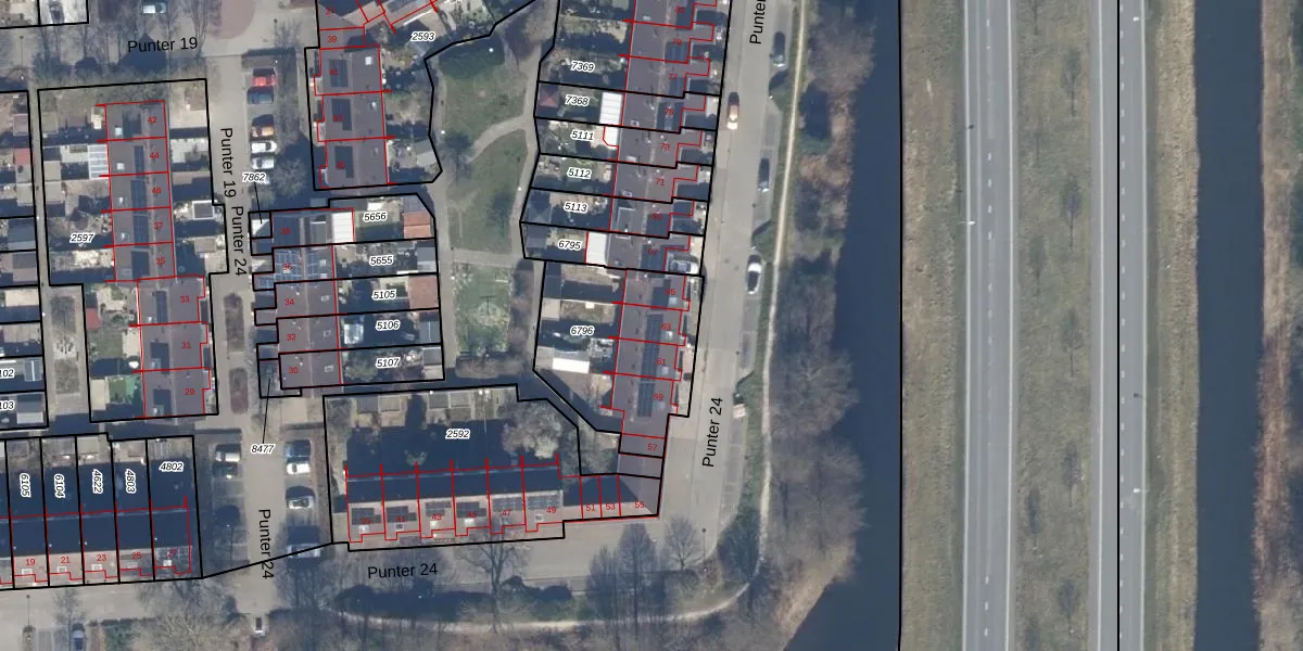 Het perceel waarop Punter 24 63 staat heeft een oppervlakte van 584 m². Dit is een groot perceel. De perceeloppervlakte wordt geregistreerd door het Kadaster. Gedetailleerde informatie over de maten van dit perceel kunt u vinden in het rapport Kadastrale kaart met maatvoering van Punter 24 63.