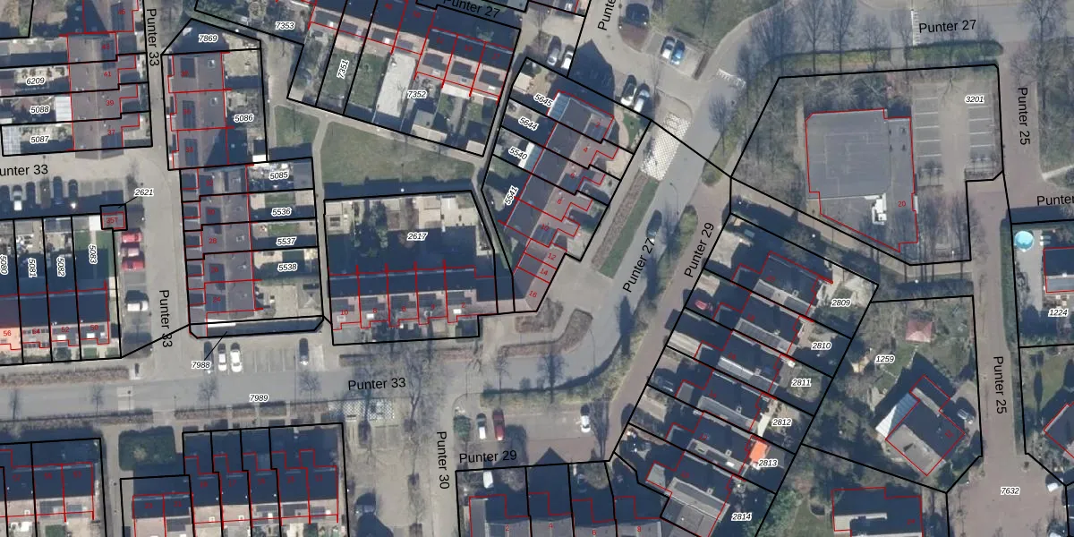 Het perceel waarop Punter 27 14 staat heeft een oppervlakte van 360 m². Dit is een groot perceel. De perceeloppervlakte wordt geregistreerd door het Kadaster. Gedetailleerde informatie over de maten van dit perceel kunt u vinden in het rapport Kadastrale kaart met maatvoering van Punter 27 14.