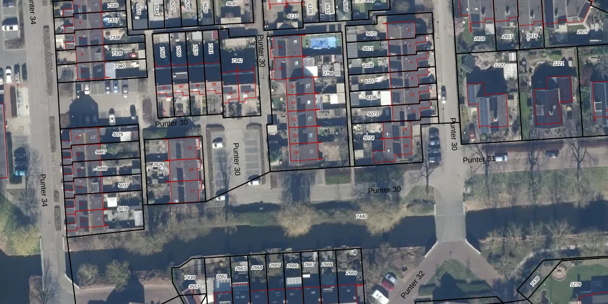 Het perceel waarop Punter 30 18 staat heeft een oppervlakte van 1124 m². Dit is een zeer groot perceel. De perceeloppervlakte wordt geregistreerd door het Kadaster. Gedetailleerde informatie over de maten van dit perceel kunt u vinden in het rapport Kadastrale kaart met maatvoering van Punter 30 18.